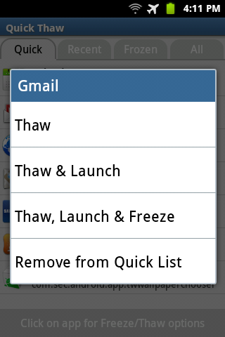 您选择的列表,快速解冻似乎开始长达使您能够快速解冻并启动冻结的应用程序。