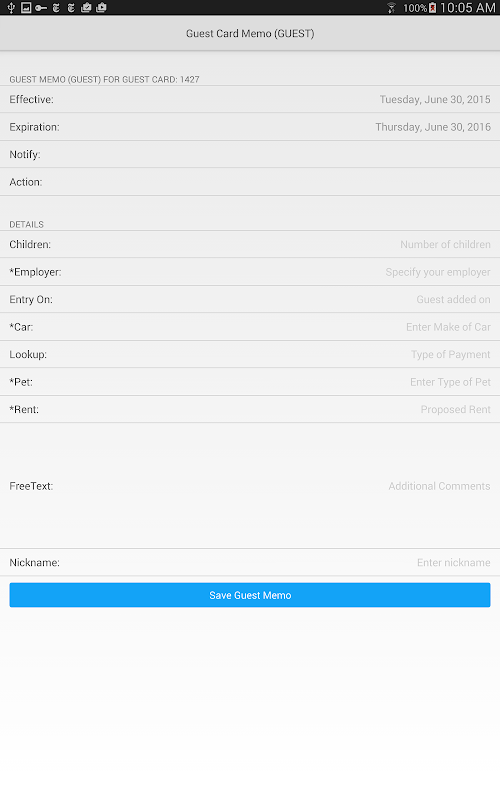 d. Prospect: Allows an end user to add/edit a guest card/prospect within a property the user has access to.