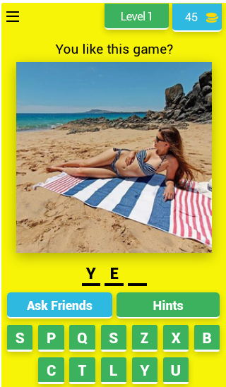 玩得开心,在文字游戏中观看穿着比基尼的漂亮女孩。回答简单的问题,发现所有比基尼女孩。