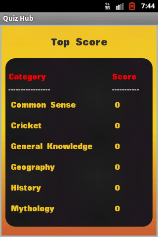 Quiz Hub:: You can Compete with your self by playing this Quiz Hub Again and Again to get your higher score in each Categories.
