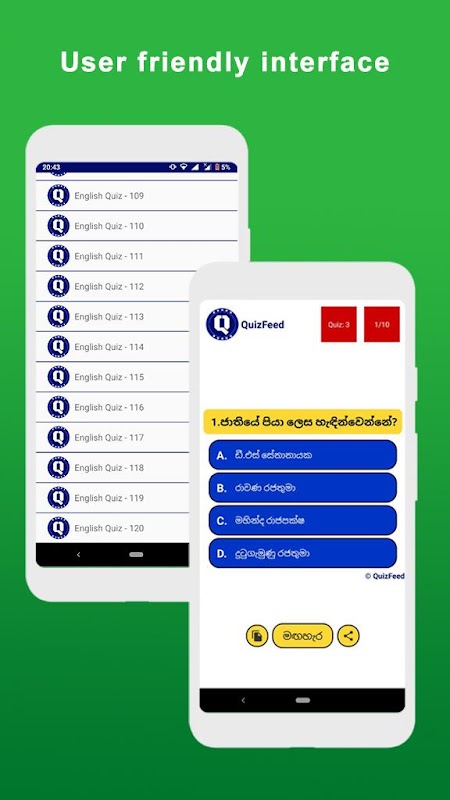 Quiz feed is not limited to narrow range of questions. It spreads to a broad range od questions which are from History of Sri Lanka, History of world, Technology, Science, Innovations, Art, Geography, Current affairs, Agriculture etc.