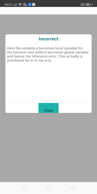 Test your knowledge in different programming languages. The app presently has quiz for JavaScript.