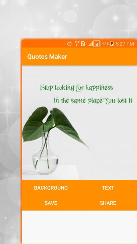 Quotes Maker is the best quotes creator and easiest way to create and share your quotes with the world using picture. Quotes Maker ready with customizing options on background and text. After that you can share your own quotes with your friends.