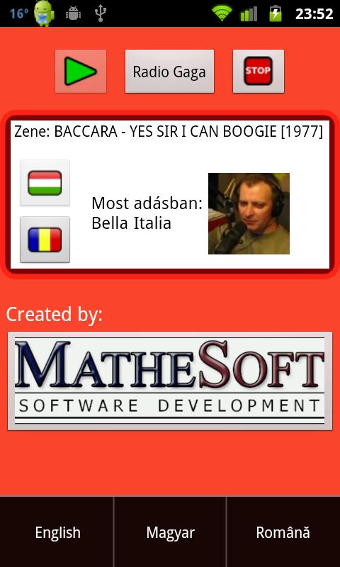 在截图中:“Zene:彼得盖布瑞尔,你的眼睛......”是的“,现在玩”和“程序,它是:”大多数adásban:加加éjszaka“和NER的text.Those信息的图像请求并分析来自radiogaga网站和应用程序显示,只有这个信息是语言设置,可以是目前唯一的匈牙利和罗马尼亚的语言。