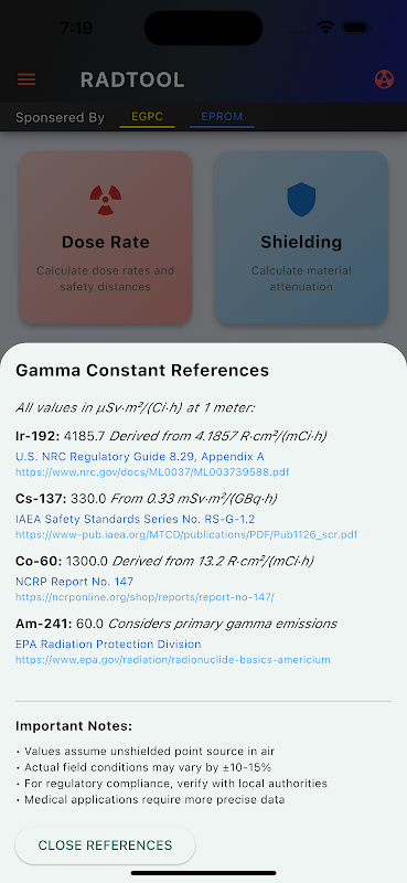 RADTOOL - 辐射安全距离计算器 - EGPC - EPROM
