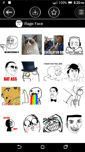 Featuring a variety funny emoticon stickers , this package includes a lot of rage comic stickers to express different tempers via your photos.