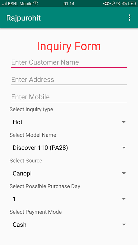 This application is not for general use. It is made specifically for Rajpurohit Bajaj, Dhar (M.P.), India