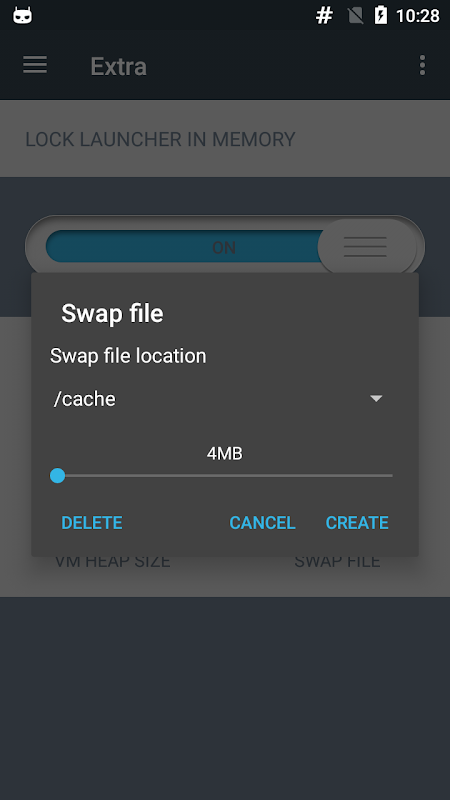 您还可以在这里找到其他一些有用的功能。 “仪表板”部分包含您的内存信息,因此您可以监控您的空闲和已用内存。重启启动器有问题的用户可以使用“内存中的锁定启动器”功能,以防止您的启动器被杀死。您还可以使用此应用程序来管理和创建交换文件,从而虚拟地扩大RAM大小。最后但并非最不重要的是,您可以使用此应用程序来设置VM堆大小并控制每个应用程序可用于其数据的最大大小。