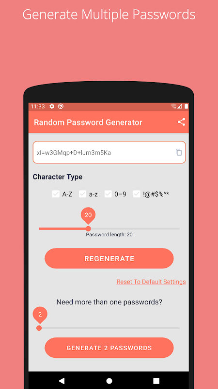 使用我们的 安全的离线密码生成器 轻松生成密码,只需轻触一下即可生成。