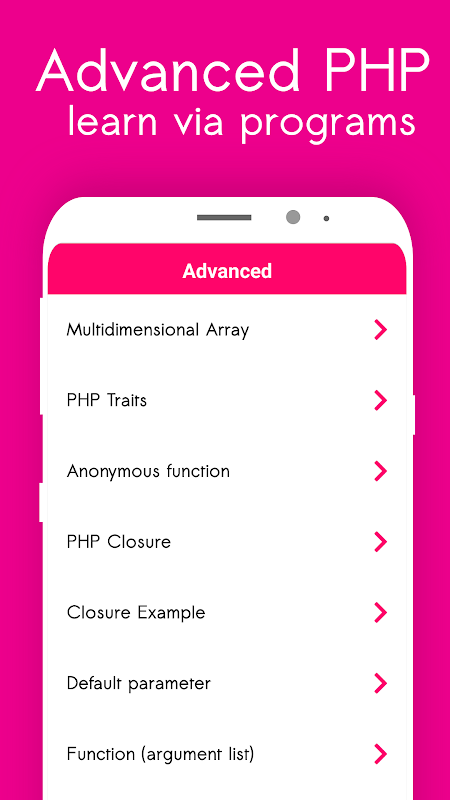 每个程序都有一个输出,因此您可以轻松了解您正在学习的内容。该应用程序通过代码涵盖了高度复杂的PHP概念的基础知识。