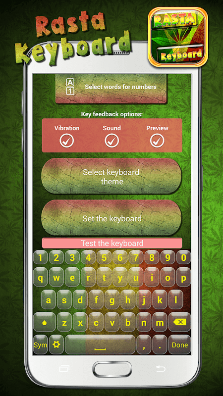 下载拉斯塔键盘你会送六惊人的“键盘外观” - “金拉斯塔键盘”,“野草键盘”,“雷鬼键盘”,“大麻键盘”等等!这是最好的“拉斯特法里的应用程序”和“大麻的应用程序”,可以发现之一!更改“的键盘设计和字体”与这些“键盘主题自由”和“拉斯塔壁纸”,你会成为你的朋友之间最酷的人!这将是你最喜欢的新的应用程序,特别是如果你喜欢“雷鬼音乐”!安装拉斯塔键盘只有一个点击,你会得到与“键盘主题免费”的“最佳雷鬼”的应用程序!你会惊讶这个“形象键盘”集合,每个“拉斯塔背景”和“野草主题为”将让您的键盘更具吸引力!