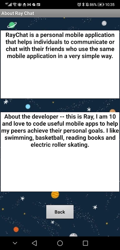 RayChat is a personal mobile application that helps individuals to communicate or chat with their friends who use the same mobile app in a very simple way.