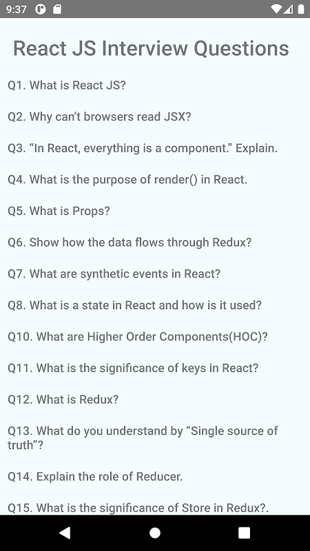 React Js Interview is a free app that makes it easy to prepare interview questions for React Js Language. Learn basic interview questions of React Js from beginning to advance level.