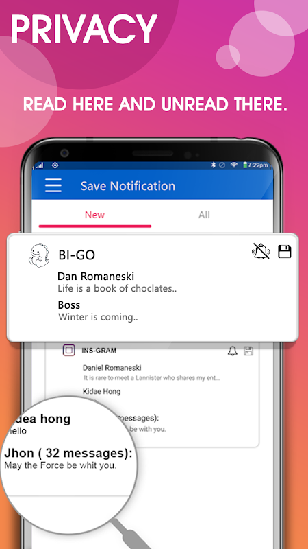 您是否面临无意中被解雇的重要通知问题?不要担心,您可以轻松访问并查看您已保存的通知,Notificaton Real Notisaver:状态和保存通知栏,通知历史记录,通知保护程序应用程序。在安全通知中显示通知状态栏并详细检查通知,通知,状态保护程序您还可以从Android推送通知,通知拦截器,推送通知中删除不需要的通知Notify贴纸,noticeapp,自动通知清除器,清除通知栏,通知卸妆。