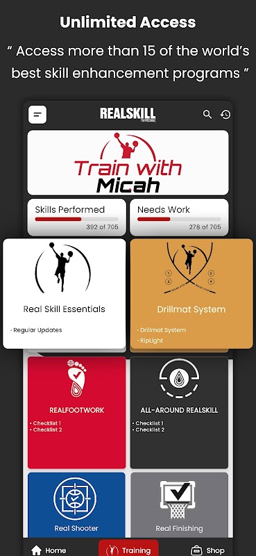 Micah Lancaster 的 RealSkill 应用程序包含超过 15 个训练清单项目,适合任何想要将篮球技能提高到精英水平的人 - 从青少年到职业球员。