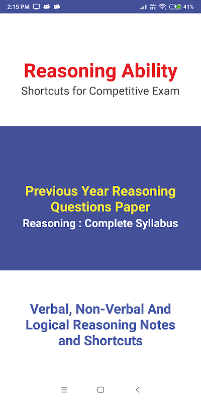 推理问题:逻辑推理问题和考试准备答案。逻辑推理是整个竞争,校园和入口在线测试中最重要的问题部分之一。通过尝试此应用程序来评估您的逻辑推理问题技巧。通过简单和逻辑的方式学习竞争推理MCQ问答。简单的提示,技巧和快捷方式可以很快解决问题。