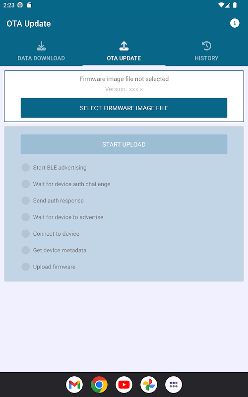 使用蓝牙 LE 连接到 Redtail Telematics 设备,更新固件并下载操作数据进行分析。