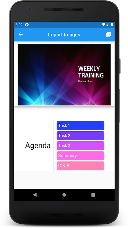 您只需要提供图像背景/幻灯片并输入文本脚本。该应用程序使用您手机的文本转语音 (Tts) 语音来创建配音,并将幻灯片与配音拼接以制作视频。