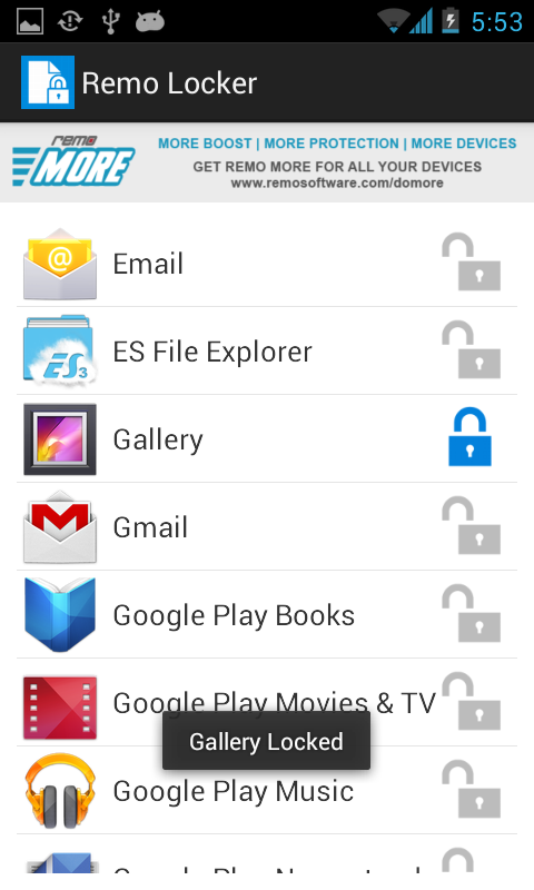 这个程序提供了单一的水龙头切换应用程序状态来锁定和解锁,也给出了不同的选项通过隐藏他们锁定的音频,视频,图像和文件。为了锁定后访问这些网站,用户必须提供主密码。