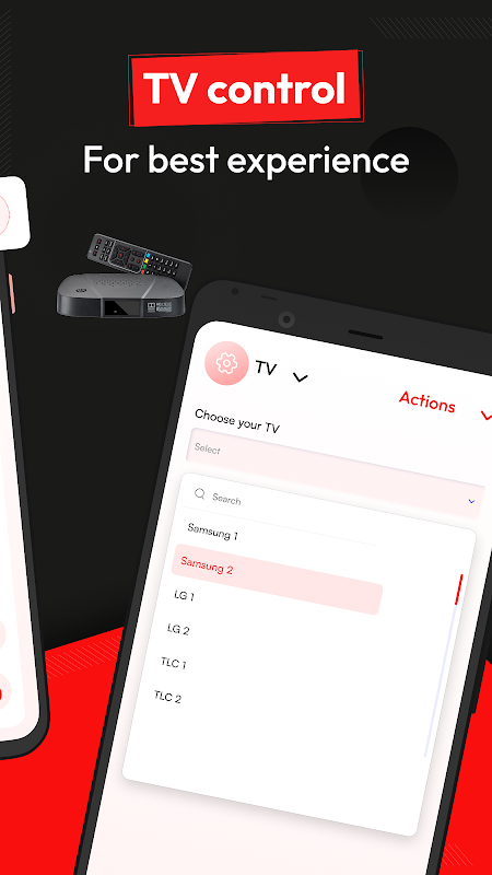 我们正在简化完成各种任务的过程,例如更换频道、打开或关闭设备电源,甚至是在电影和电视节目之间进行选择。只需将应用程序下载到您的手机或平板电脑,使用 WiFi 连接,然后将其与您的设备配对即可体验神奇!