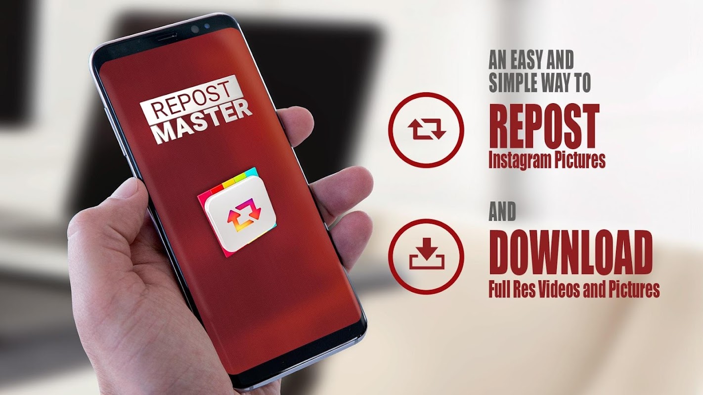 If you ever wondered how to respost an image or how to save a video from instagram right into your gallery in a very simple and easy way, here's the answer! Repost Master is really light-weight and straightforward. All you have to do is copy the URL from the post you want to download or repost. Repost Master will do the rest.