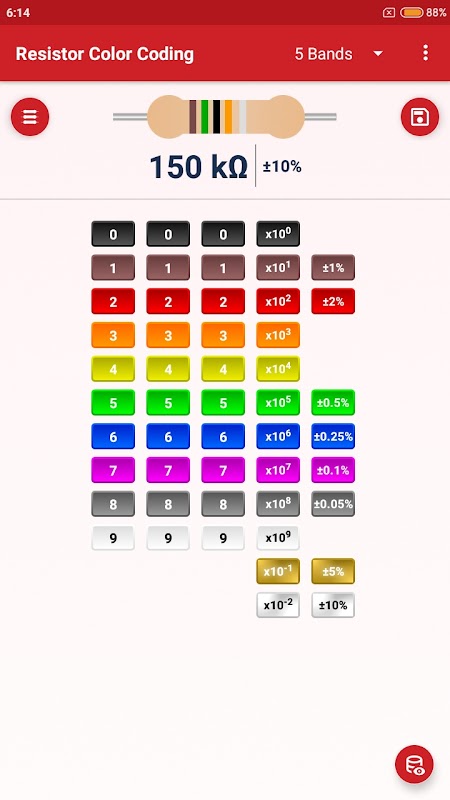 Resistor Color Coding 应用程序通过选择其颜色来帮助获取电阻值。获取 3、4、5 和 6 频段的电阻值。查看下面给出的应用程序的更多功能和详细信息。