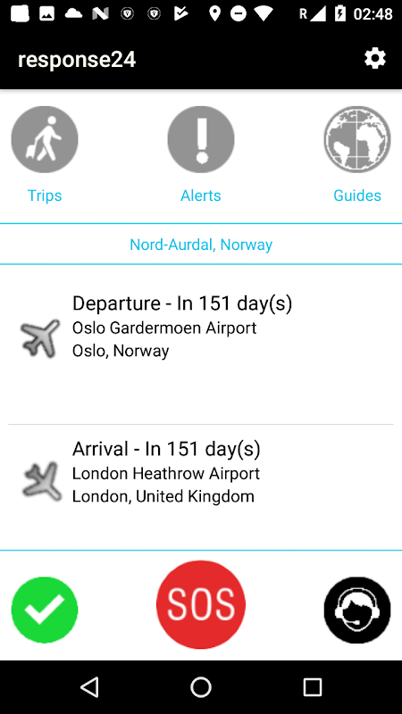 The response24 app downloads the latest alerts for your destination, giving you current security updates that might affect you. On the home screen you can easily see how many new alerts have come in since you last read them.
