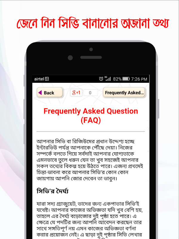 People try higher study, some take university admission or, some gather technical skill to get established in life. Some goes for BCS/ govt job, some for bank job, some for private job, some for teaching etc. To get a desired job and build successful career one needs to outsmart all other candidates in the recruitment tests or job interview etc. the recruitment process starts with inviting for CV/Resume. So a good CV is the very first chance of the candidate to win the employer and get the job. So the CV needs to be made with care and uniqueness. In this app we discussed how to write a good CV/Resume, what makes a CV unique from others, what are the common mistakes in writing CV etc. Besides, Download link of various types of free CV format is attached here.