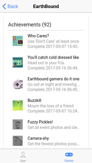 Keep track of your achievements and game progress on RetroAchievements.org. Use the app to search through games, view your achievements and progress, and check the RetroAchievements leader board.