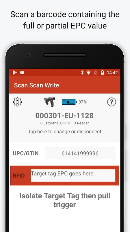 其次,扫描标签的临时EPC条形码,如果不使用临时EPC条形码,则只需拉动扳机-确保目标标签是阅读器附近唯一的标签。