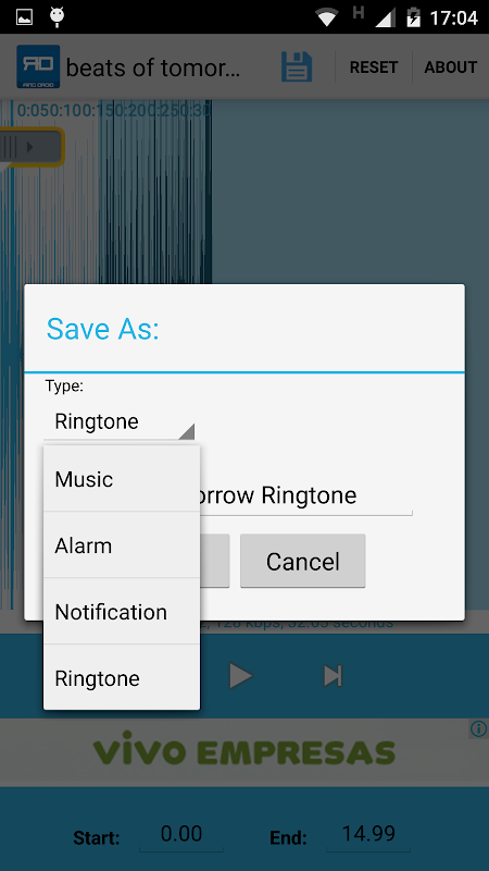 Use o Ring Droid para editar arquivos MP3, WAV, AAC,AMR e criar toques, alarmes e notificações.