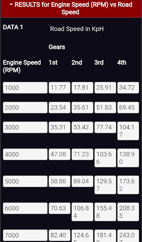 道路速度,换挡点和转速下降计算器