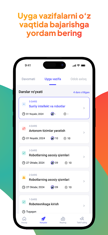 Ushbu ilovada o'quvchilar davomati va ularga berilgan uy vazifalari va o'quv jarayonidagi faolliklari evaziga Markaz tomonidan beriladigan geymifikatsiya XP va Kumushlarini hamda o'quvchilar o'rtasidagi reytingni kuzatib borishlari mumkin bo'ladi。