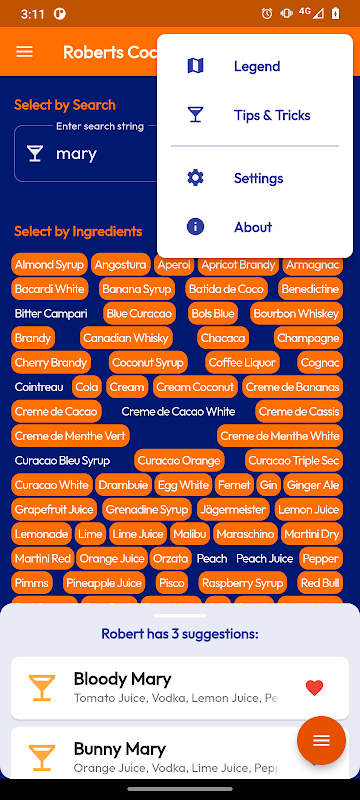 Roberts Cocktail Key is a cocktail recipe app for barkeeper pros. It is a cheat sheet for experienced and pro barkeepers. The app features 84 recipes for cocktails and drinks that Robert used and refined over decades and made a unique collection.
