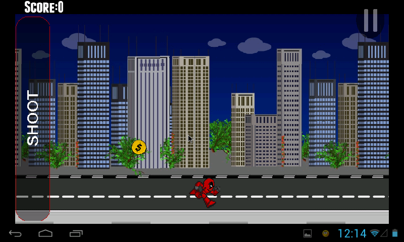 Tap the screen to have your player Jump and use the shoot button to help avoid being hit by enemy robots.