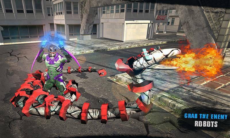 Experience futuristic robotics world like a real robot snake to hunt down giant dino robot in city battle. Enjoy the ultimate robot snake game and fight against the monster dinosaur robot like a fiendish autorobot snake. Create havoc in the city, crash cars and kill evil robots. Trap enemies who are creeping hideously using your long metallic tail and suffocate them to death. Crawl in the big city to stalk out your victims and become the ultimate snake robot superhero of future snake robot world.