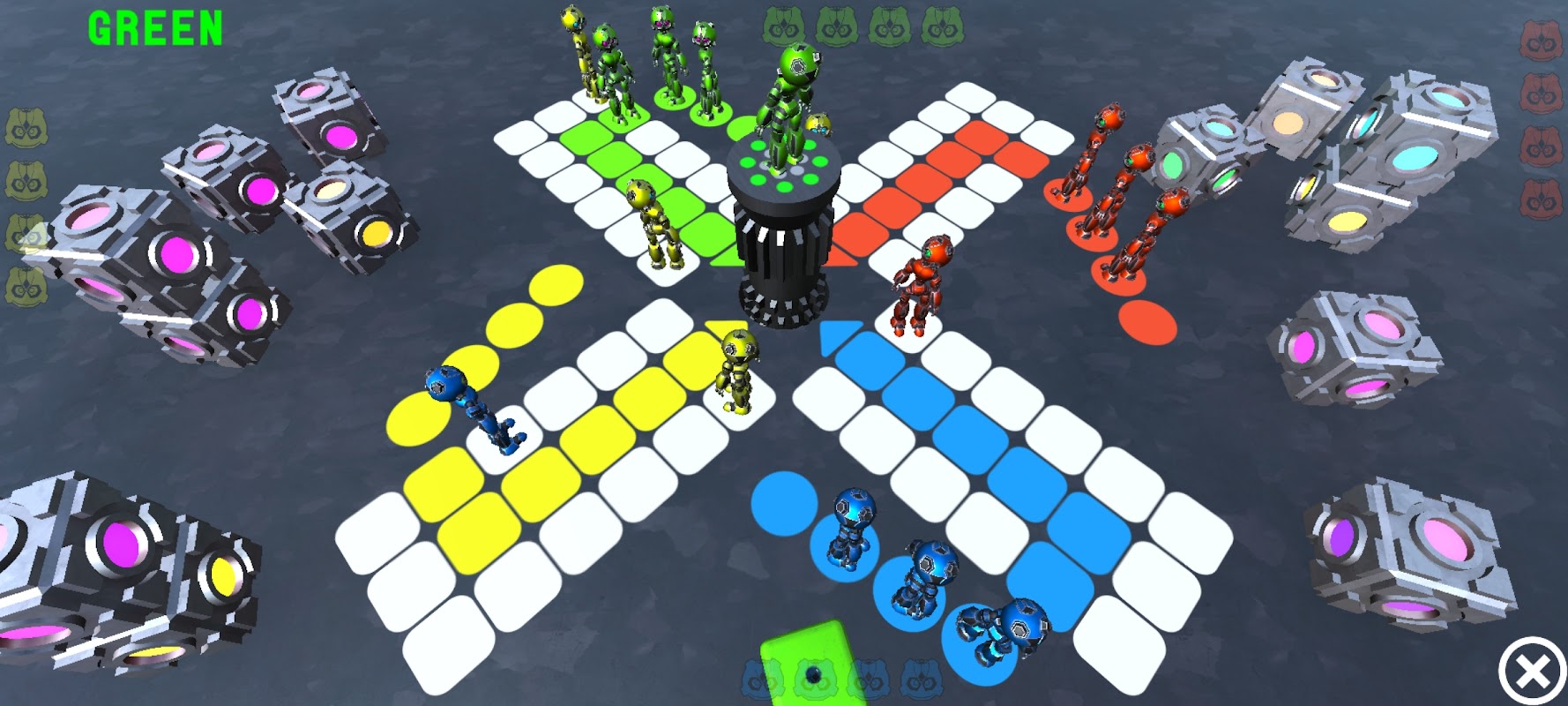 这是卢多涉及机器人的经典游戏的新版本。你可以玩对朋友或计算机主板上达 4 球员。每个玩家将轮流掷骰子。如果骰子落在 6,你可以移动机器人在板子上的然后再掷骰子。如果你卷 6 第三次在一排下一个玩家将轮流。如果你的机器人落在另一名球员在结束了移动机器人上,然后他们会去从跳板。游戏的目的是要得到所有你的机器人围绕棋盘和上的最后一个方阵,他们将取出的游戏。第一个球员这样做就会赢。