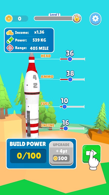 Your mission is to destroy everything! Don't forget to upgrade your rocket's head, ammo, fuel and engine to improve your components and increase your chance of total destruction!