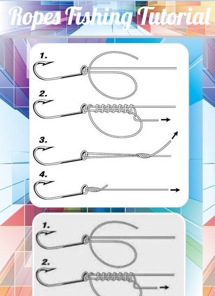 该应用程序包含有关如何将线绑在钓鱼线多方面的绳子拴在钩教程,