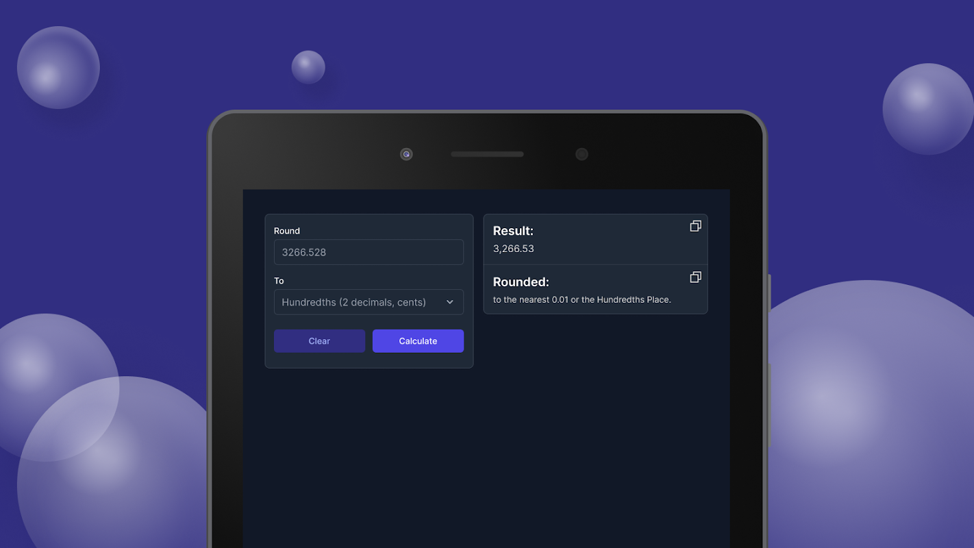 1. **即时四舍五入**:输入您的数字并选择所需的小数位或最接近的整数。立即获取您的四舍五入数字。