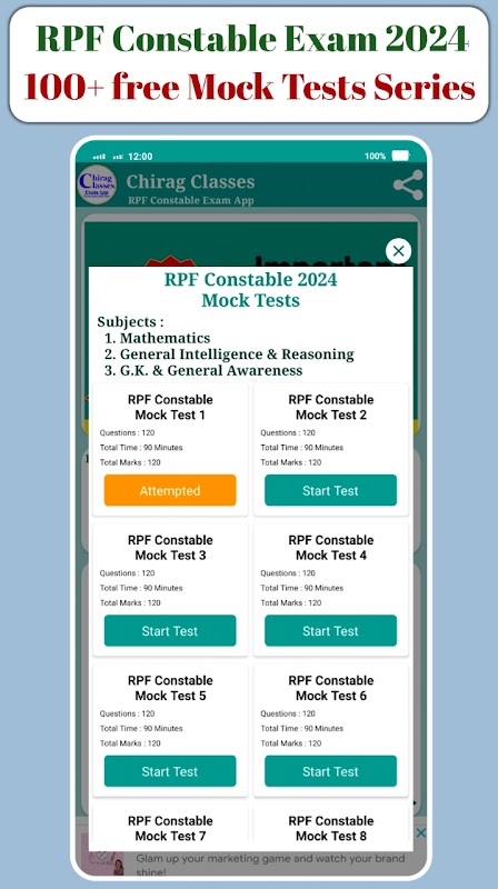 RPF 警员考试 2024 模拟测试或练习集和准备应用程序