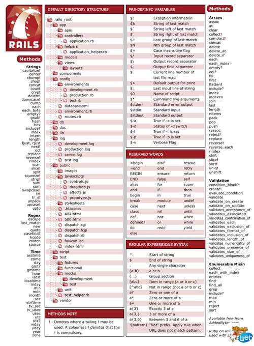 I quick guide to ruby on rails code cheat sheet. Learn ruby on rails coding school,study tools, website apps, ruby gems, html coding, offline handbook.