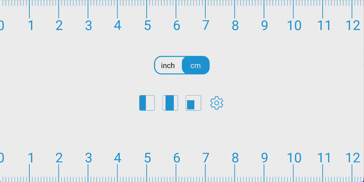 带双光标、厘米/英寸单位和简洁视觉设计的屏幕标尺。