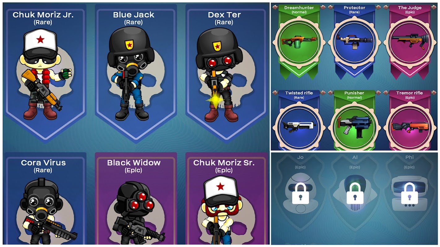 In Run Or Hunt game you can unlock many soldiers with powerful and unique abilities. Upgrade soldiers to higher level to get special buffs. Upgrade different guns for more damage. Unlock alien pets and use them on your side while fighting against alien intruders. Battle and defeat enemies as fast as possible
