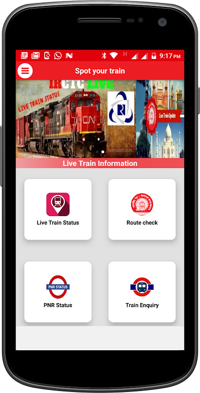 Indian railway official app.Running train status app.Live train status app.spoturtrain Indian railway PNR.IRCTC Rail Connect app.IRCTC Train infowhich is developed by considering the convenience of users resrearch upon IRCTC and commuters of the Indian railways. It is simple to understand and even easier to operate. The screens of the App. is spacious and tidy which will help to operate it faster.