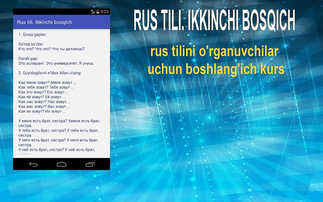 Rus tilini o'rganishni istaganlar uchun oson dastur. Ikkinchi qism.