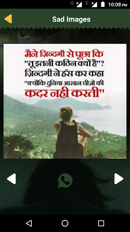 Sad Shayari is the best collection of hindi and Urdu Dard shayari. You can share your sad feelings by this appliction. Share your feelings with your friends and downloads and upload in all social media.