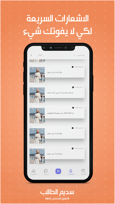 Sadeem 使学生能够查看考试和课程安排、家庭作业、电子测试和交互式视听讲座。
