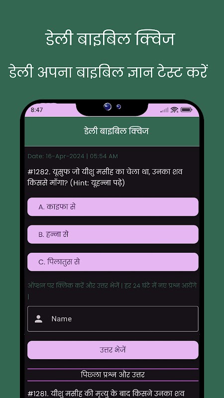(V) 您可以发送您的圣经经文,该经文将在主屏幕上以您的名字发布。