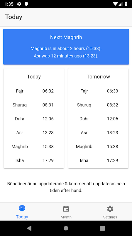 Salatappen ger dig bönetider enligt årstabellen för Helsingborg, Malmö och Klippan.